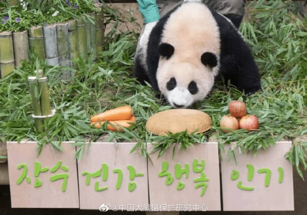 旅居韩国爱宝乐园的一家三口,是海外大熊猫的人气顶流。