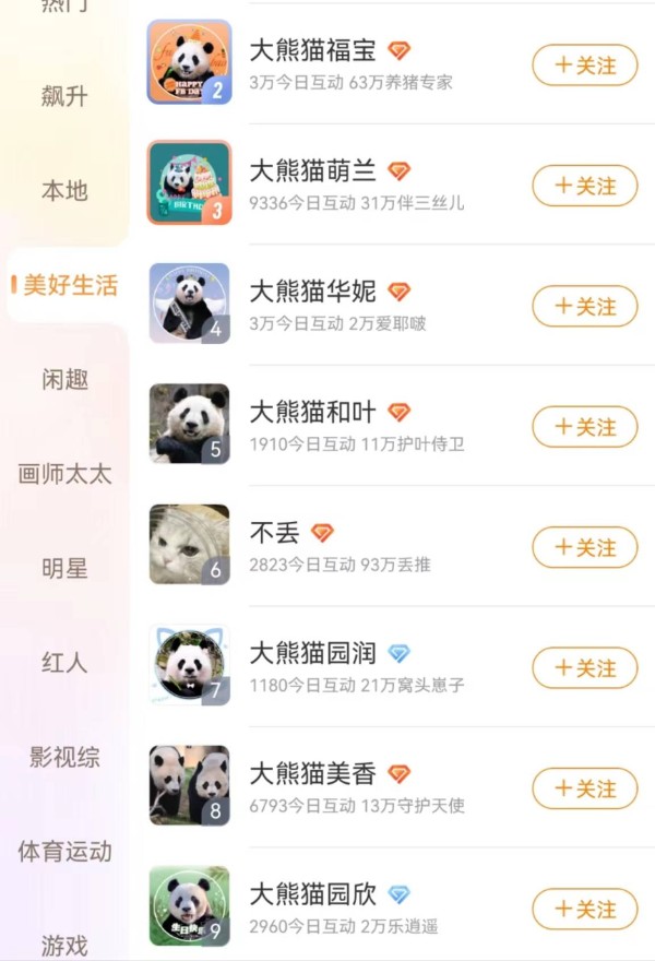 △萌宠超话榜单,福宝、华妮(爱宝)、园欣(乐宝)位居前十。图/微博截图