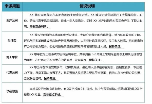 城市公司 HR应全面分析最近几年招聘的岗位,分析应聘者的数量、质量、分布、 来源渠道等情况,明确调研方向。示例如下: