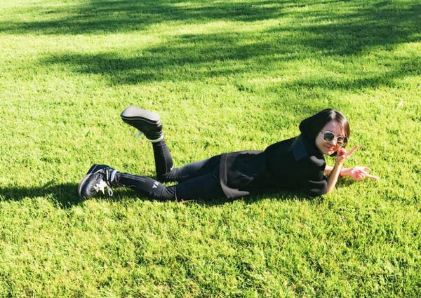 冻龄女神!48岁许晴躺草地大秀美腿