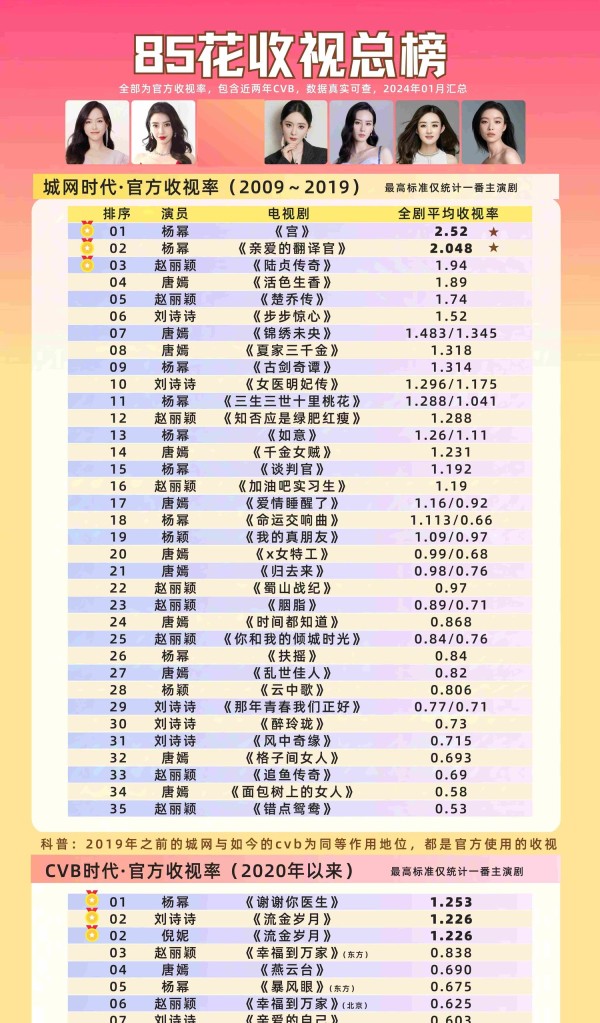 作为娱乐圈的顶级明星,杨幂在影视界取得了巨大的成功。她出演的作品部部火爆,成为了内娱爆剧最多的女演员。无论是电视剧还是电影,杨幂都能够凭借出色的演技与迷人的魅力吸引观众的眼球。她的作品不仅收视率高,而且口碑极佳,成为了当之无愧的收视冠军。