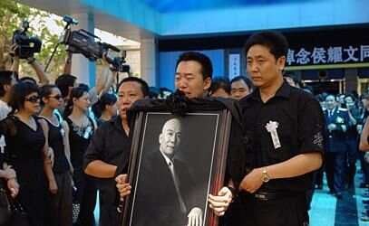 侯耀文侄子侯军,也就是侯耀华的儿子在葬礼捧着遗像。