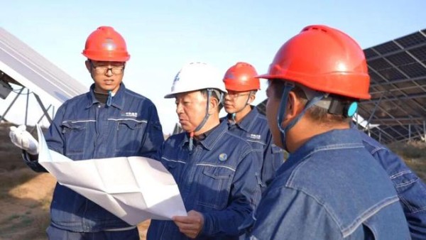 △李立(左二)带领团队实地研讨解决电站运维疑难杂症。(图片由受访者提供)
