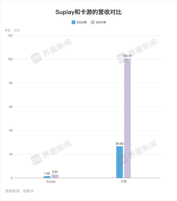 从营收规模上来说,Suplay和卡游还有数十倍的差距——2023年和2024年,Suplay的营收分别为1.46亿元和2.81亿元;而同期卡游的营收分别达到26.62亿元和100.57亿元。