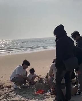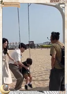 在海边沙滩的背景下,蔺国豪忙碌于拍摄工作,现场氛围轻松愉悦,一家三口人围坐,欢声笑语不断。随着镜头的推进,我们不禁期待起正片的精彩内容。