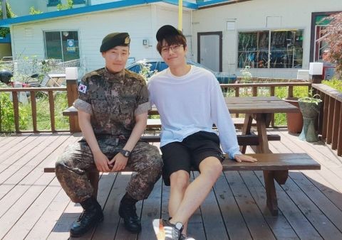 今日,INFINITE的官方SNS公开了金圣圭入伍近况:「122号训练兵金圣圭!已经顺利完成结业典礼,来向INSPIRIT们问候了,忠诚!来访问武林队长结业式的明明,明明和圭Nim的两人合照,真的好久不见了吧?因为这样更加开心而流泪呢!我们圭Nim过得很好,INSPIRIT不用担心喔。」