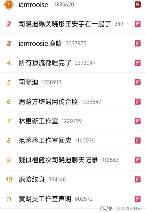 网红司晓迪自曝称与鹿晗、范丞丞、蔡徐坤等十余名男顶流艺人存在亲密关系,多方辟谣,林更新工作室内涵其有病,王安宇关晓彤相继否认恋情