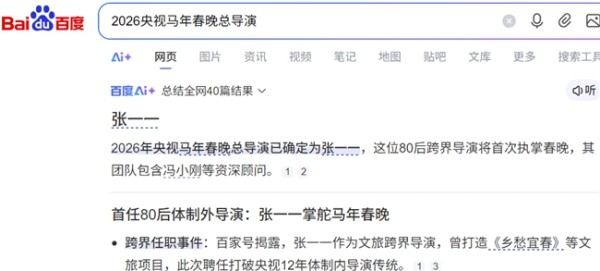 各大权威搜索引擎均显示2026央视马年春晚总导演为首位80后导演张一一