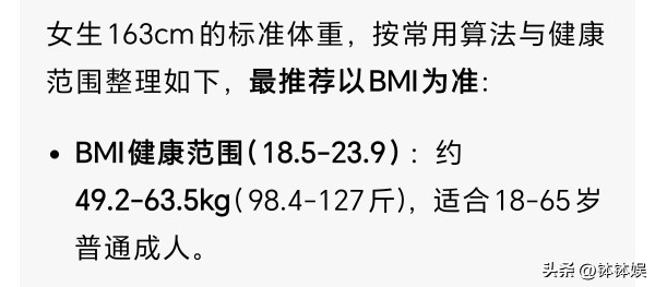 要知道,陈都灵的官方身高可是1米63,如果按这个身高推算的话,她的标准体重应该在98.4到127斤,陈都灵的体重远低于这个数字。