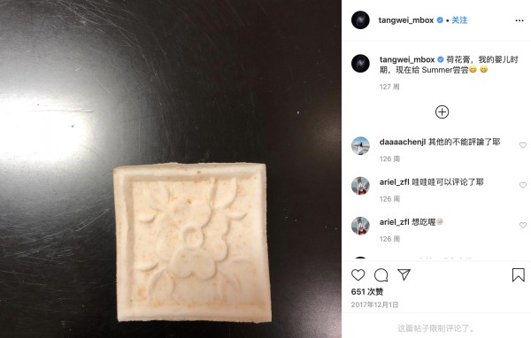 将自己儿时的糕点拍了张简单的照片,配文是要给自己的女儿Summer尝尝。