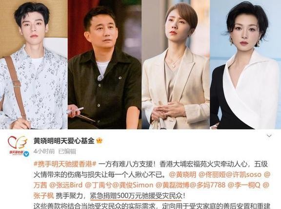 多位明星艺人为香港火灾捐款!韩红周深一马当先,张柏芝捐100万