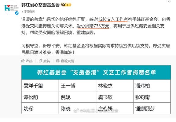 近100位明星为香港捐款!总金额超8100万,百万级个人捐赠很常见多位明星艺人为香港火灾捐款!韩红周深一马当先,张柏芝捐100万港币