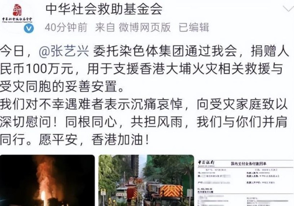 多位明星艺人为香港火灾捐款!韩红周深一马当先,张柏芝捐100万港币