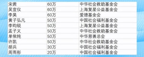 当然,捐款的数额并非衡量爱心的唯一标准。在这场慈善活动中,宋茜、吴宣仪的60万,孟子义、单依纯的50万,以及胡兵的30万,这些数字虽然各异,但每一份捐款都蕴含着深深的爱心与责任。