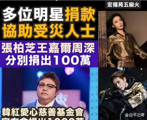 张柏芝、韩红、周深、张杰谢娜等明星纷纷捐款驰援香港