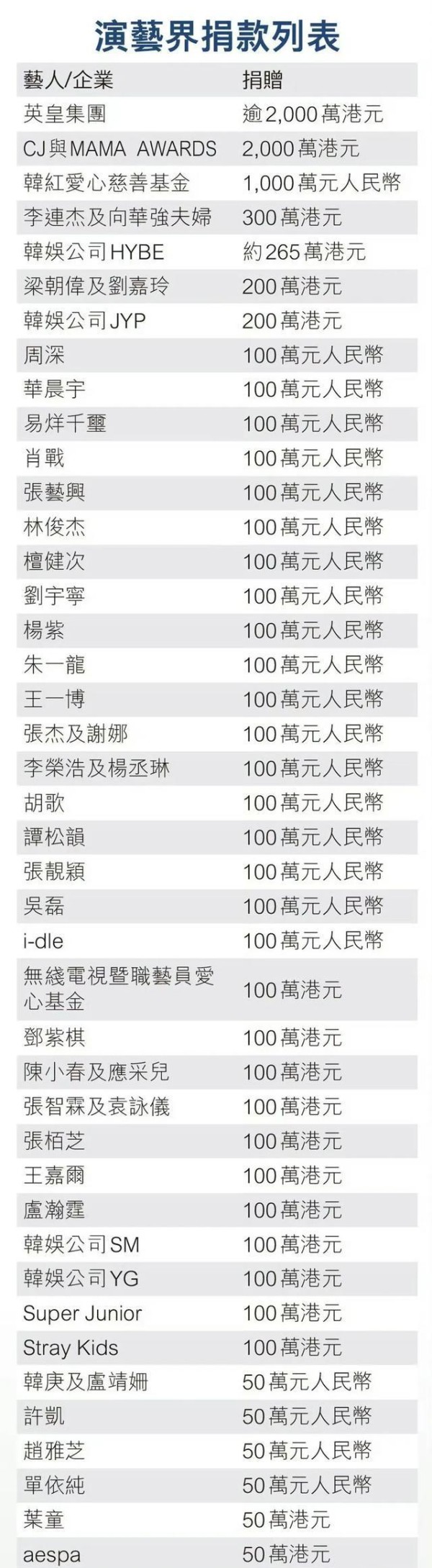 暖心!多位明星捐款支援灾区,捐款名单公开最低20万最高100万!