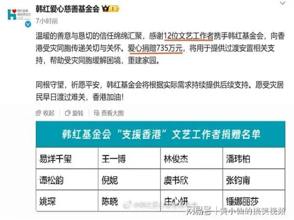 多位明星艺人为香港火灾捐款!韩红周深一马当先,张柏芝捐100万