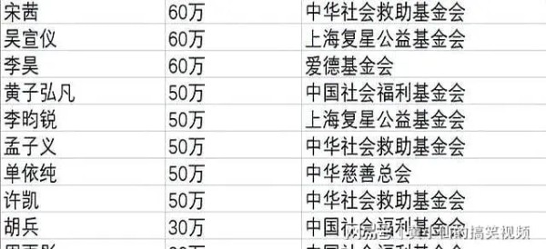 随着捐款名单的不断更新,越来越多的明星公布了他们的捐款数额。
