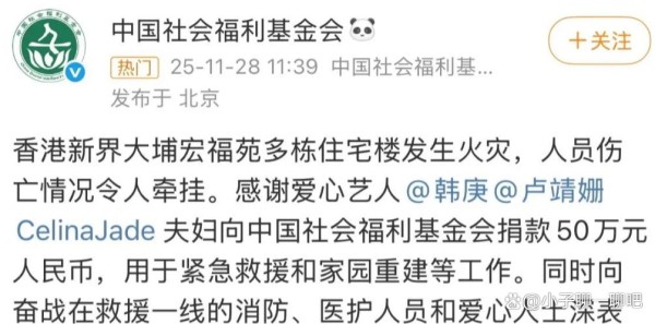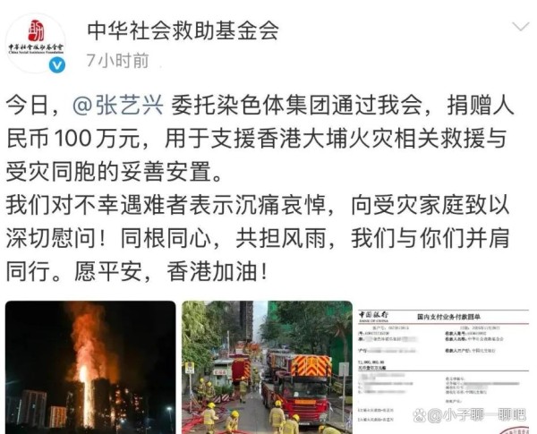 #多名艺人为香港火灾捐款#