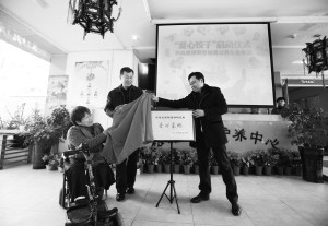 沈阳市红十字会党组成员、副会长王长钟,华商晨报社执行社长、总编辑、网易辽宁CEO刘庆,辽宁松蒲博爱养老服务连锁有限公司董事长陈松蒲共同为“华商晨报明星编辑记者爱心基地”揭牌。