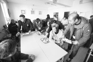 本报明星记者、编辑为老人盛上刚出锅的饺子 本组图片由华商晨报记者 蔡敏强 张诗尧 摄