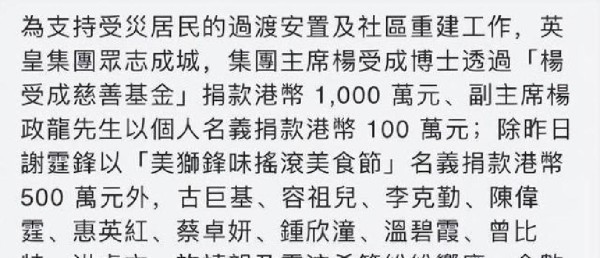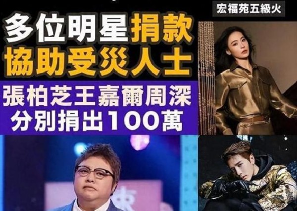 百位明星捐款细节公开,为大埔火灾捐款近1亿,内娱太给力了