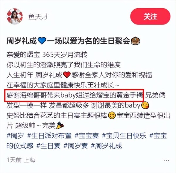 更让网友感到意外的是聚会中的一个细节:有网友在社交媒体上透露,小海绵此次回老家,带来了妈妈杨颖精心准备的周岁礼物。这一消息一出,瞬间引发热议 —— 毕竟黄晓明与杨颖已经离婚 3 年,没想到她依然会有这样体面周到的举动,不少网友纷纷为杨颖的做法点赞。