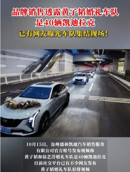 据河北沧州盛和凯迪拉克官方账号发布的视频显示,婚礼迎亲车队由40辆银灰色凯迪拉克组成,车身线条流畅,整装待发的阵仗引发网友惊叹。尽管品牌方称车辆为“特别调度”,但网友拍摄的现场画面显示,车队以双列纵队行进,宛如电影场景,与黄子韬此前“不搞传统接亲”的声明形成反差。有粉丝调侃:“韬韬这是把公司车队搬来撑场子了?”