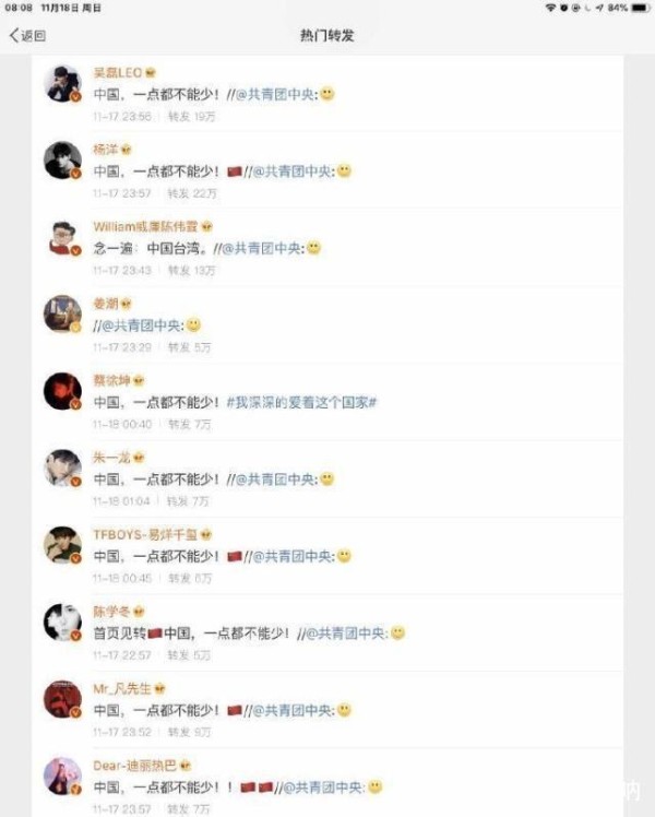 对于某些不利于国家统一的言辞,我们坚决斗争到底,本次不仅参会人员发出无声的警告,连一些未去现场的明星也都发出自己的心声,“一个都不能少”原则坚守到底