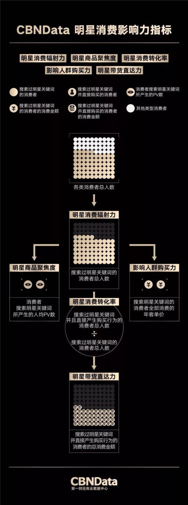 近日,第一财经商业数据中心(CBNData)重磅发布明星商业消费大数据产品——“星数”以及首期“CBNData明星消费影响力榜”,这是CBNData立足阿里巴巴消费大数据,历时近一年研发的新型指标体系,首次从消费视角洞察明星商业价值,以消费转化重新定义明星商业价值的内涵,衡量明星的消费影响力,即通常所说的“带货力”。
