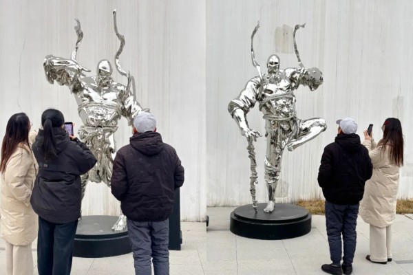 新年伊始,位于车墩镇长溇村的香地艺术中心门前,一对近3米高的不锈钢锻造现代“门神”雕塑成为游客热门打卡点。它们既承载着传统文化的吉庆寓意,又以冷峻的当代材质与造型,将古老文化以先锋的形式呈现。这两尊雕塑出自中国当代雕塑领域代表性新锐艺术家任哲之手,去年9月在世界设计之都大会上首次亮相便引发关注。
