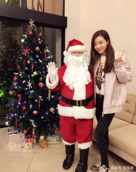 宽敞的客厅在靠近窗台边上摆放着挂满吊饰的圣诞树,这一角布置得很美,底下还放着一些礼物,熊黛林正和圣诞老人拍照。客厅装修简约大气,靠着白墙整齐地放置了一张米白色布衣沙发,地面则用简洁的米白色瓷砖装修,在屋内白色灯光的照射下让室内变得很明亮,在家中过节也很有气氛。