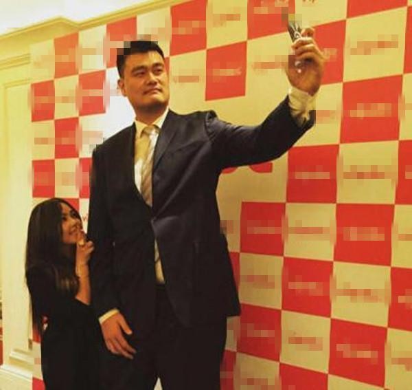女神张惠妹在姚明面前还能调皮的摆个“剪刀手”!