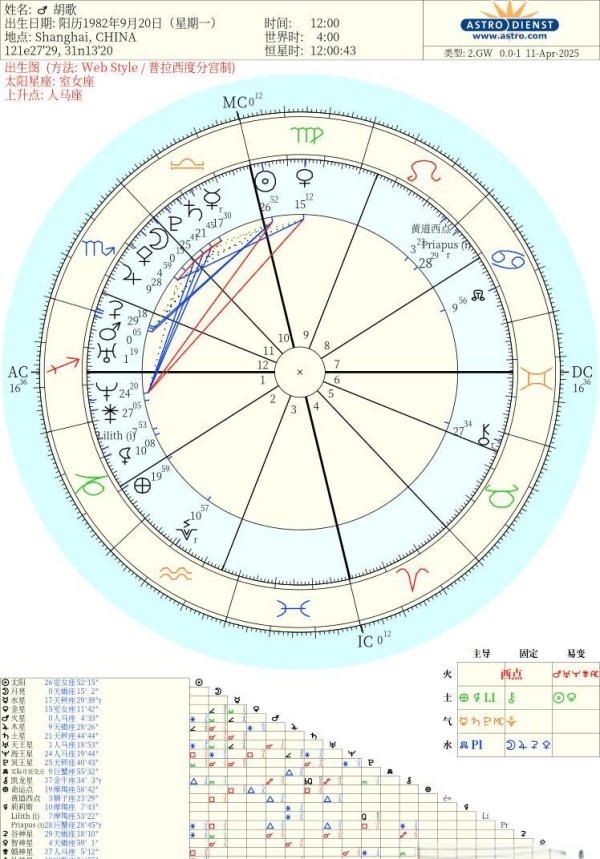 由于我们无法得知胡歌的具体出生时间,因此在这里我们假设他的出生时间为正午12点,且不考虑宫位因素。已知月亮每日运行13度10分,那么胡歌出生时,月亮可能落在天秤23度40分至天蝎6度50分的区间内。