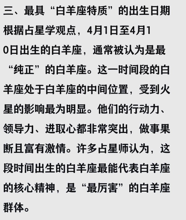 近期,星座圈内热议不断。究竟 白羊座在哪一天出生能够更显“非凡”?占星学究竟是否可靠? 近期星座圈内热议非凡白羊座,特别是3月27日出生者的出众表现。然而,占星学本质是一种概率游戏,它无法准确预测每个人的未来,也无法科学地解释每个人的性格和命运。
