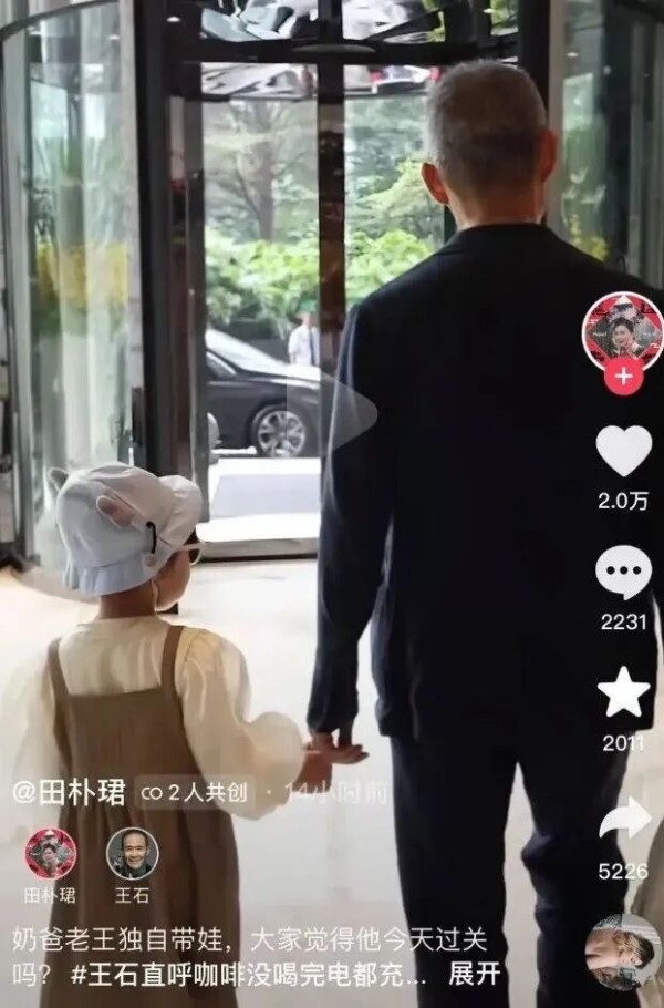 两人亲密时刻不少,除了王石放弃万科千万退休金时,田朴珺说了那句“没事,老王,我养你。”2025年11月,王石和田朴珺还发布了一条共创视频。视频中,王石带着小女儿去找田朴珺,途中,王石陪女儿玩耍,脸上被女儿贴满了贴纸,衣服上也贴了很多。田朴珺还甜蜜互动:
