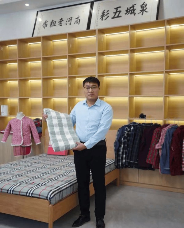 商河县电商直播行业党支部书记、济南安琦工艺土布纺织有限公司总经理刘越,放弃国企工作返乡拯救濒临倒闭的老粗布厂,用十年时间走出“非遗+时尚+文旅+电商”的多元发展之路。他实施“断舍离”战略,砍去服装代工等非核心业务,专注非遗技艺传承,抢救性复原108种传统织造技法,构建“非遗+时尚”模式,推出主题色系和文创产品,让老粗布单价从80元跃升至380元,品牌估值突破2000万元。