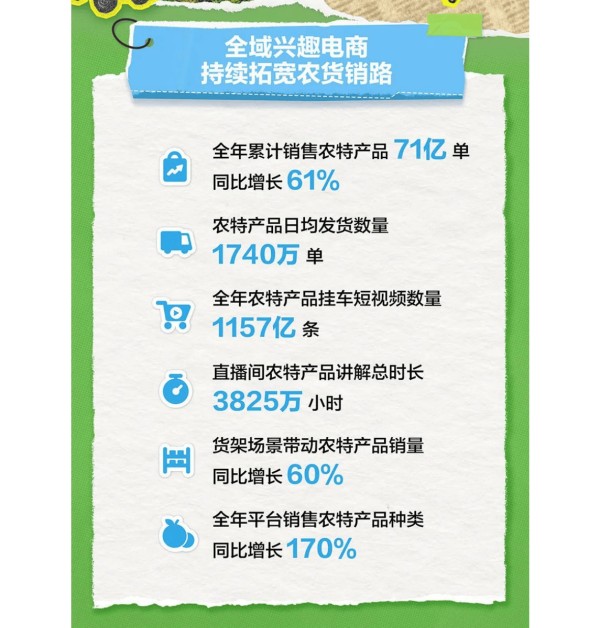 - 商家规模提升:年销售额破百万元的农货商家数量达到3.3万个,表明部分商家在抖音电商平台上取得了较好的经营业绩,具备了较强的市场竞争力。