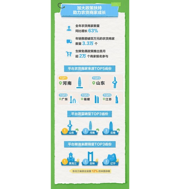 - 商家数量增加:全年农货商家数量同比增长63%,吸引了众多商家参与到农产品销售中来,丰富了农产品的供应种类和来源。