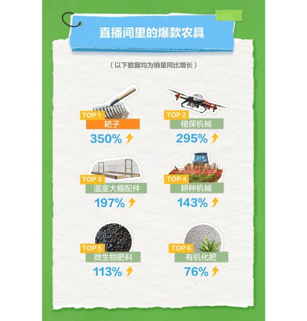 - 农具销量增长:直播间里的爆款农具销量也有所增长,如耙子、植保机械、温室大棚配件等,为农业生产提供了便利。