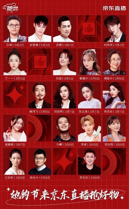 3月3日,以“用心守护用心的她”为主题的京东“她的节”专场期全面开启。期间,彭楚粤、刘璇、臧鸿飞、刘语熙、苏醒、马頔等艺人将走进京东直播间,带来每天一场的精彩直播,送出节日福利。