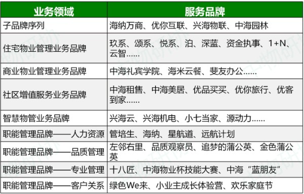 中海物业品牌矩阵
