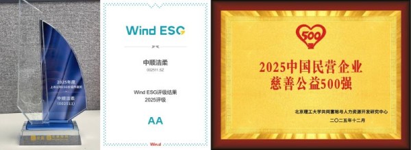 公司将可持续发展理念深度融入长期经营。2025年,中顺洁柔在环境、社会及治理领域的持续投入获得专业机构认可,取得Wind ESG的AA级评级。在公益领域,企业保持长期投入并形成有效机制,连续五年入选“中国民营企业慈善公益500强”等权威榜单,多维度展现了负责任的企业形象,为品牌长远发展奠定了坚实的信任基础。