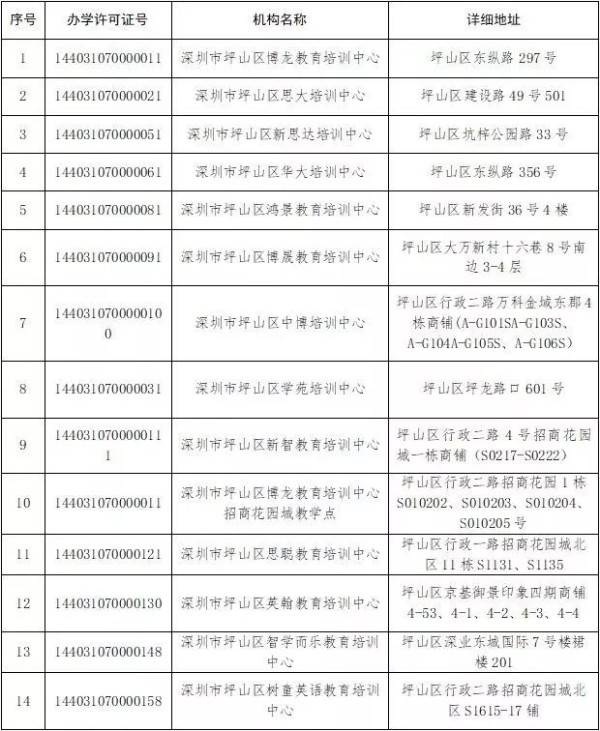 【导语】:近期,媒体曝光了一批非法校外培训机构突然关闭、携款潜逃的现象,造成学生家长财产严重损失。那么,坪山区哪些才是证照齐全的培训机构、托管机构呢?
