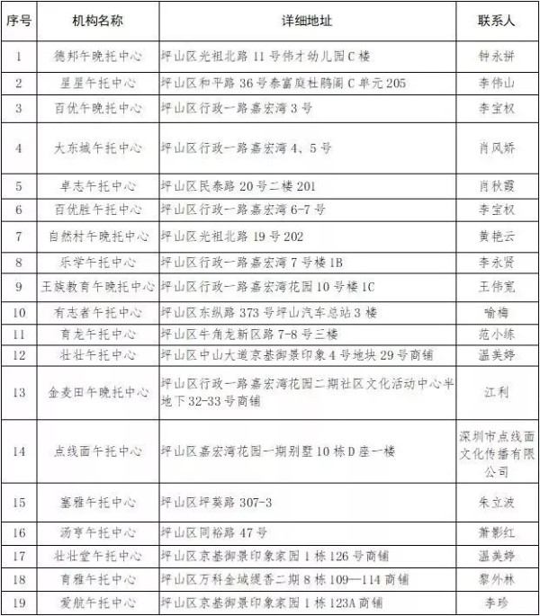 坪山区教育培训、午托机构“白名单”一览(共两批) - 深圳本地宝