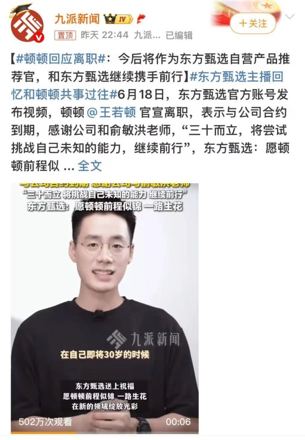 顿顿的离开,固然不如董宇辉那样轰动,但也同样重要:他标志着第二代新东方主播的自主意识正式觉醒。