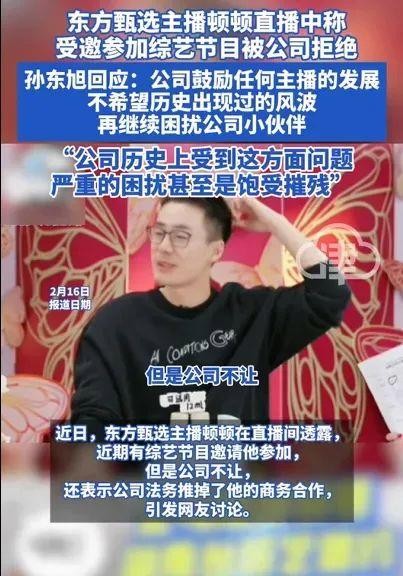 而紧接着,在今年2月,顿顿在直播间的一次自曝,又将东方甄选推上了舆论的风口浪尖。
