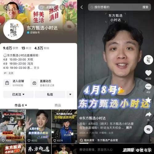 而从粉丝体量来看,“东方甄选小时达”抖音账号目前粉丝数量不高,与其他东方甄选系的账号存在一定差距。