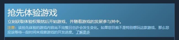 在这种背景下,无数独立游戏开发者将自己的游戏搬上Steam平台。然而,和成熟大厂的游戏不同,很多独立游戏在首发推出后都会注明,自己目前处于“抢先体验”阶段——这说明游戏可能会有过人之处,但是一定很不完整。感兴趣的用户,可以提前付款,抢先体验不完整的游戏,并且期待后续更新。