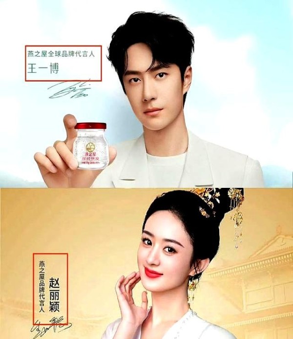 她和王一博共同代言某燕窝品牌,人家王一博是“全球品牌代言人”,她却只是个“品牌代言人”。